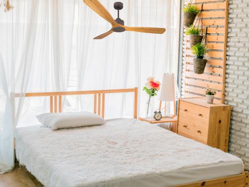 Ventilateur de plafond Réversible Thermostat Wifi Moteur à courant continu Toits en pente Télécommande Hypersilence Mémoire