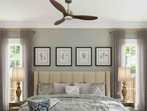 Ventilateur de plafond Réversible Thermostat Dimmable Wifi Moteur à courant continu Toits en pente Télécommande Lumière à trois tons Hypersilence Mémoire